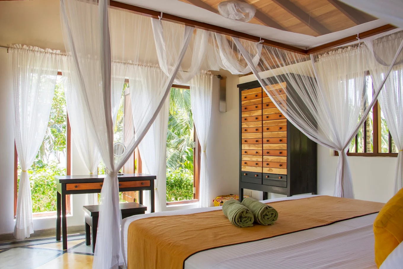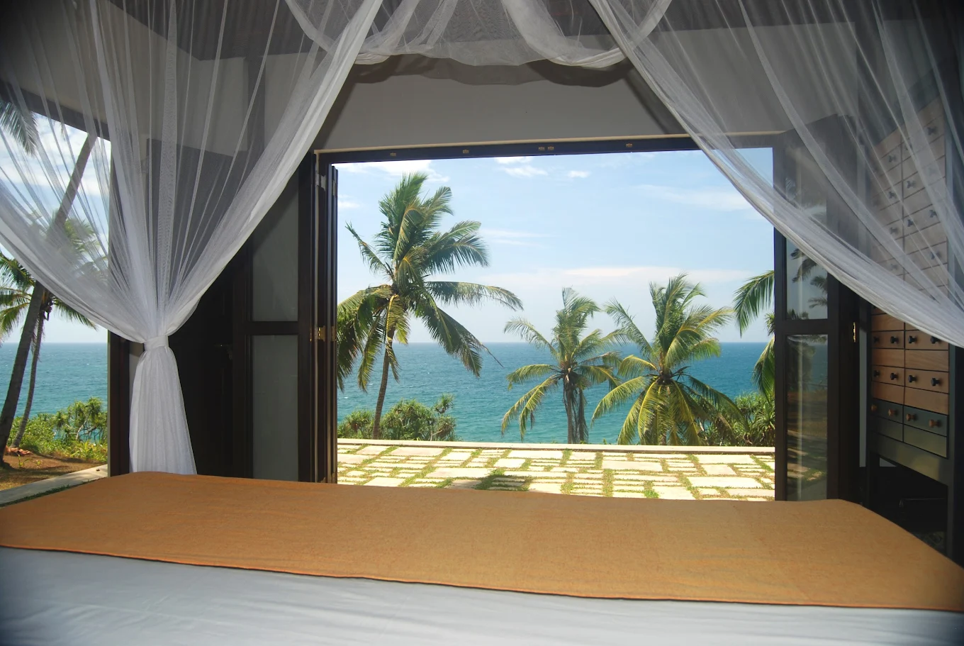 The Saffron House is a luxury four-bedroom oceanfront villa located on a headland between Hiriketiya Bay and Dikwella Beach on Sri Lanka’s south coast. Set within nearly three acres of tropical walled gardens, it offers stunning panoramic views of the Indian Ocean, dramatic rocky seafront, and complete privacy. The villa is fully staffed, including a chef, and combines simple luxury with a serene, family-friendly atmosphere ideal for relaxation, surfing, and nature lovers.